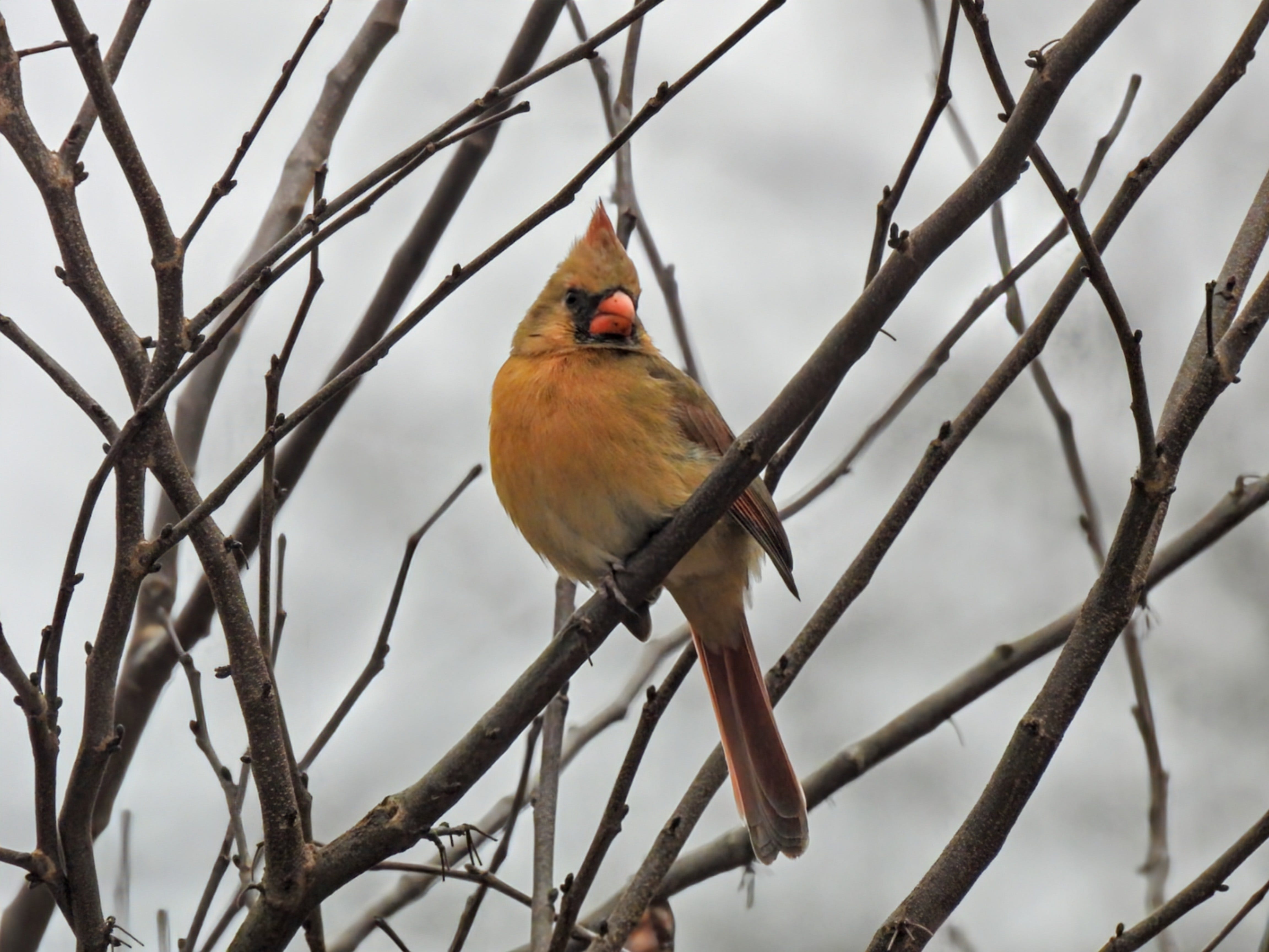Cardinals are awesome! Here, this time of year, with only tiny bit of green left, and everything else being dull brown, or gray, the cardinals (males) are so striking. On occasion we'll get a frosty morning, then they are even more so. I'd carry my camera, but I'm also looking for that buck you talk about (lol) ... and I find minimalism is the best out hunting. (Carrying rifle and cam w/ telephoto only invites messing up with either.)